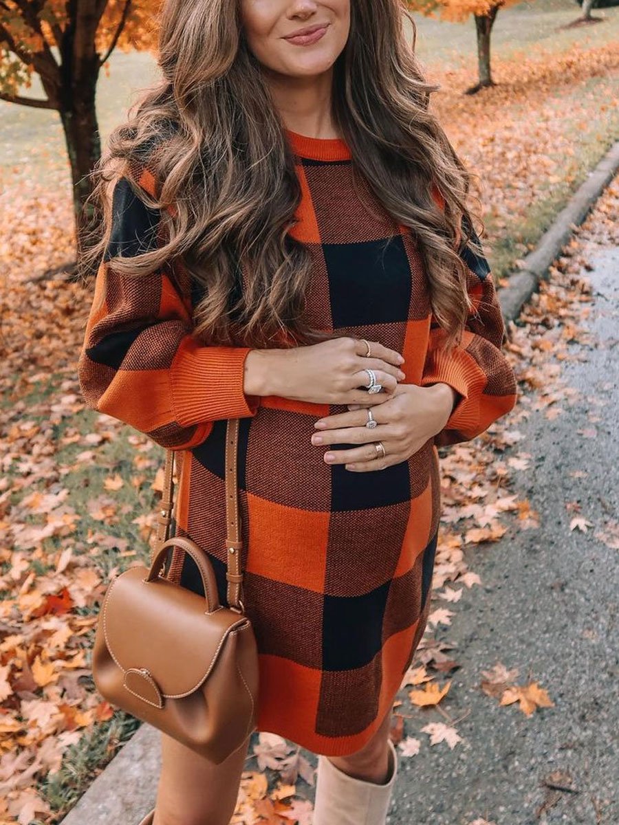 Plaid Casual Simple Maternity Sweater Dress