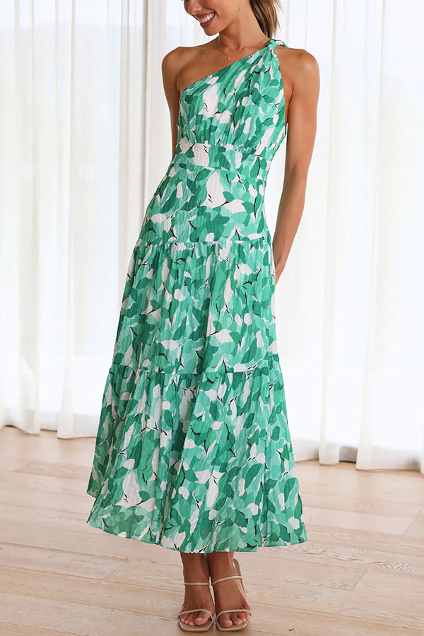 Just Met You Floral Knot Detail One Shoulder Tiered Maxi Dress