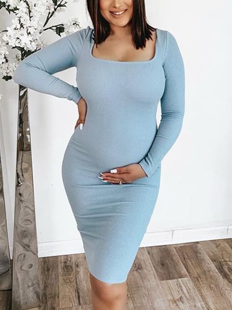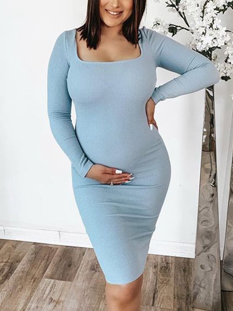 Product: Maternity Casual Square Collar Solid Color Slim Dress