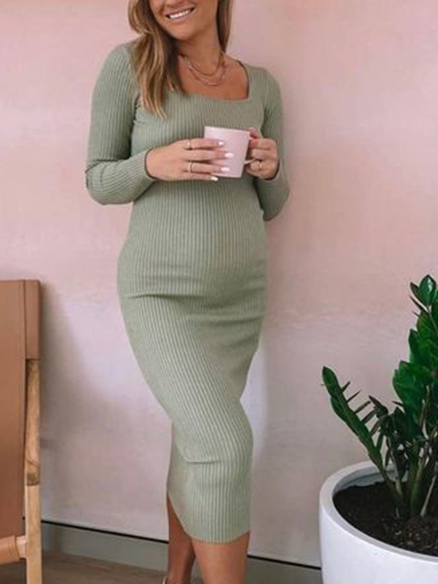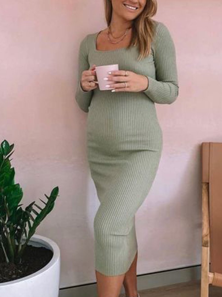 Maternity Fashion Square Neck Slim Solid Color Knit Dress