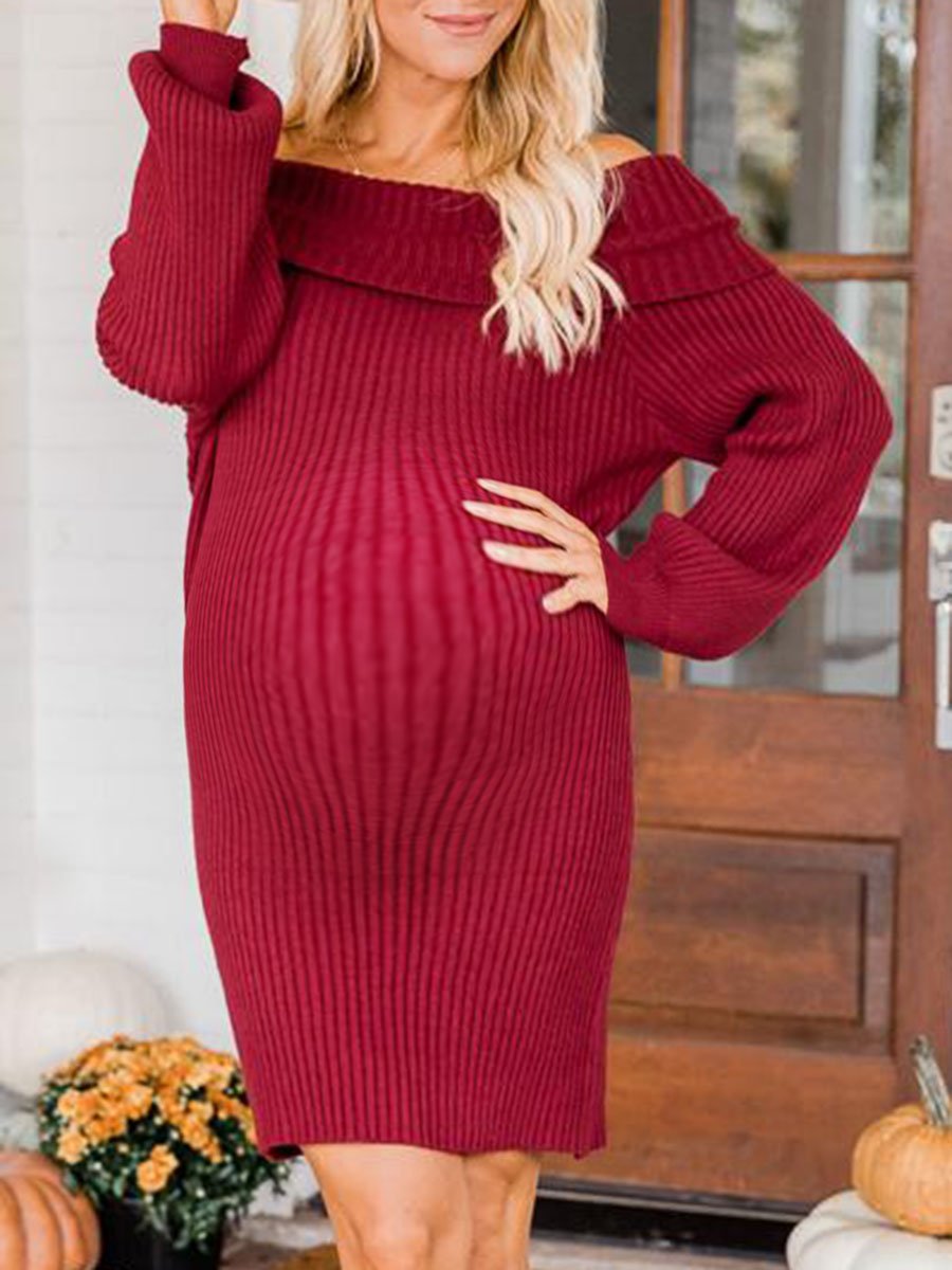 Product: Maternity Sexy Off-shoulder Long-sleeved Sweater Dress