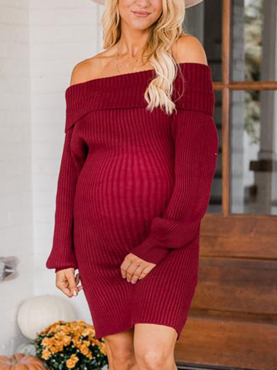 Maternity Sexy Off-shoulder Long-sleeved Sweater Dress
