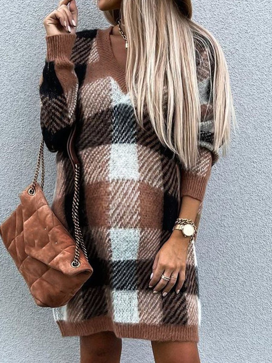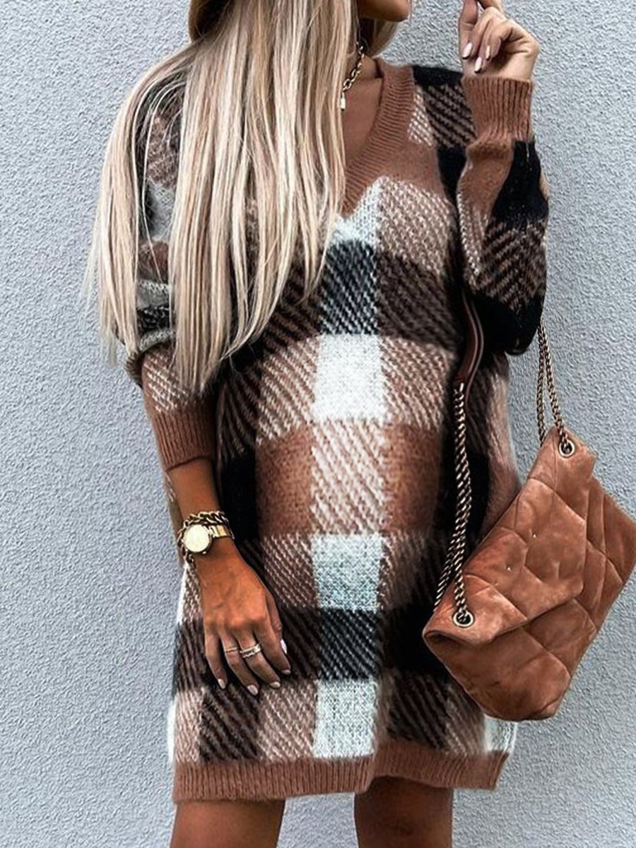 Product: Plaid Casual Simple Maternity Sweater Dress