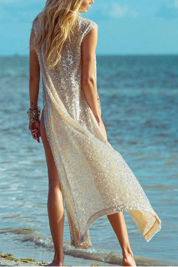 Shine Bright Sequins Open Front Maxi Kimono Coat