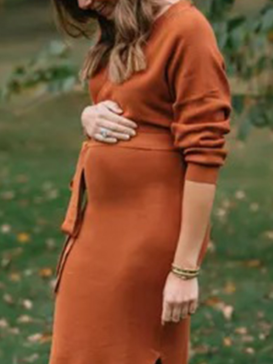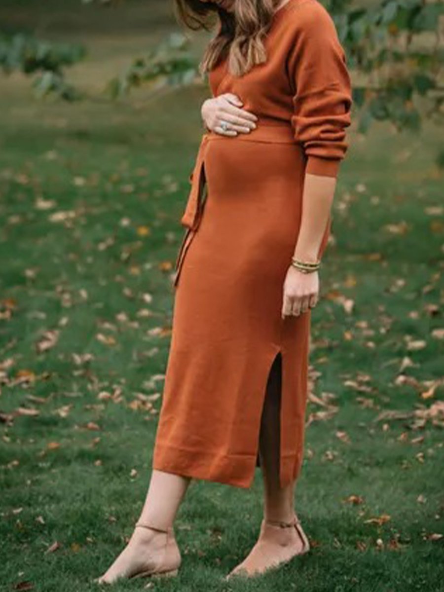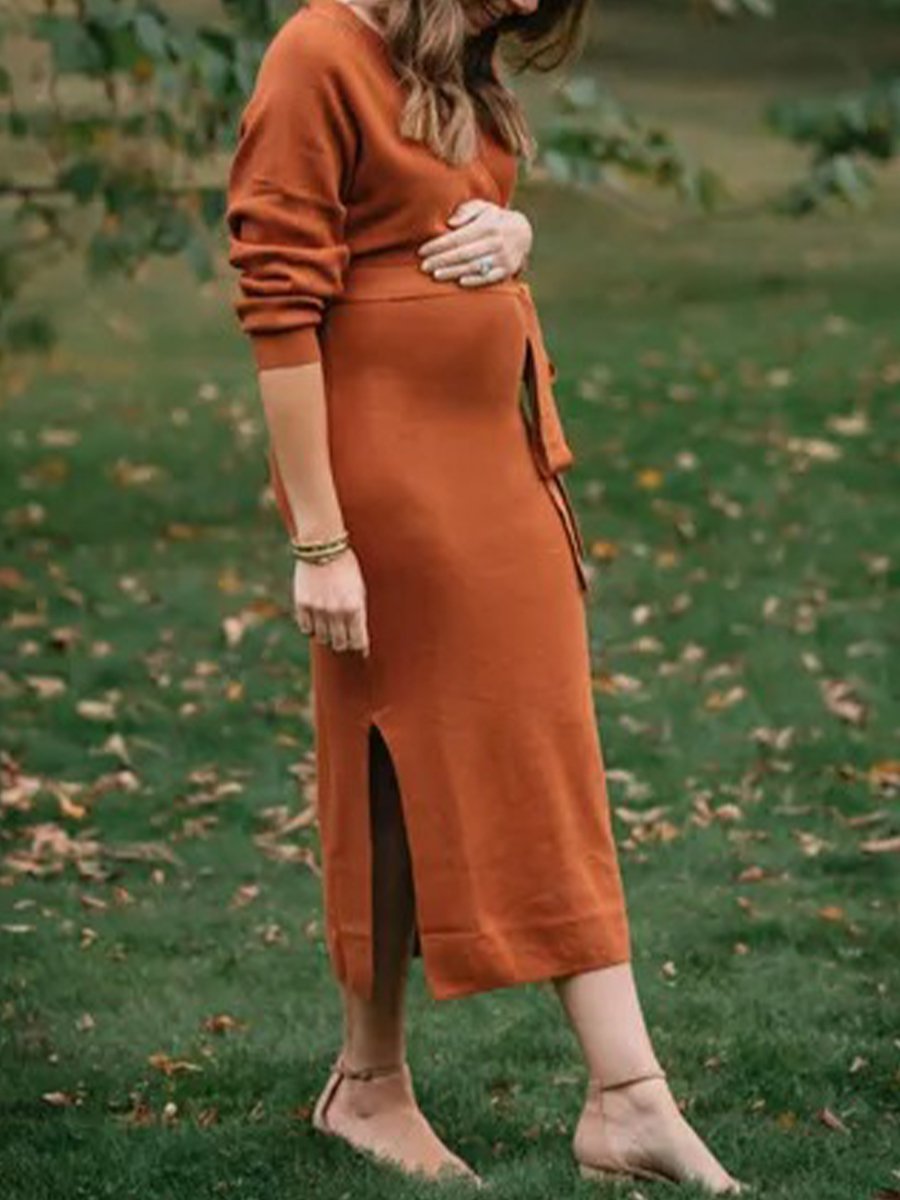 Product: Simple Side Slit Casual Knitted Maternity Dress