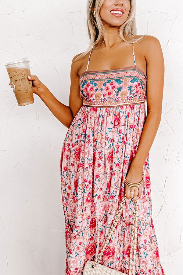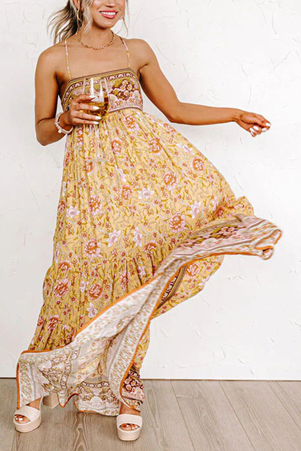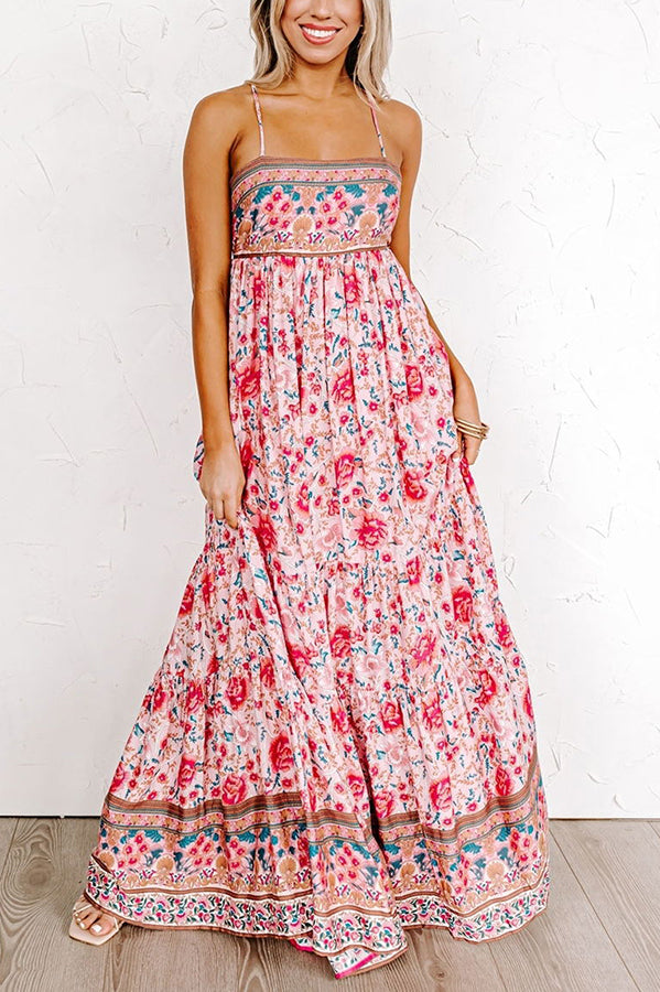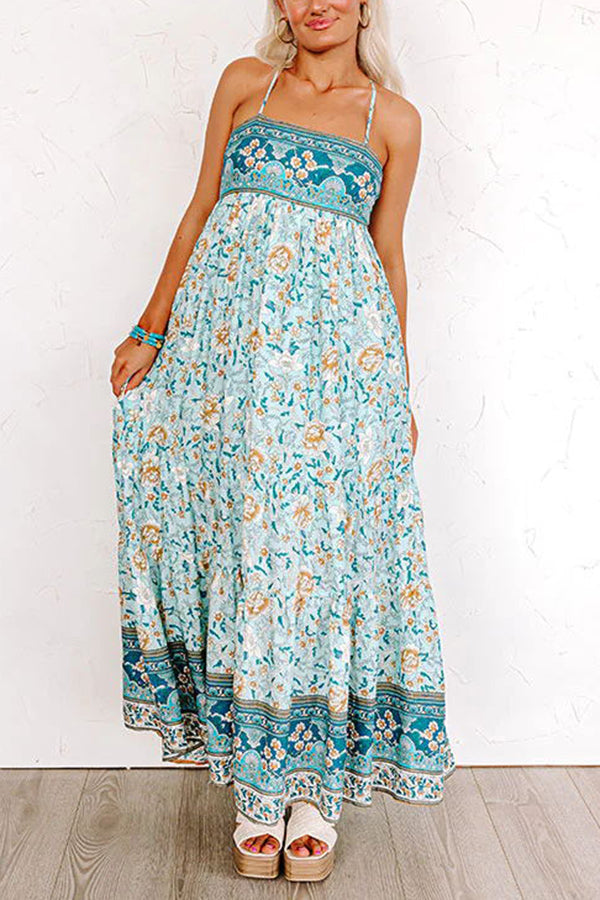Sunny Day Darling Boho Printed Back Adjustable Tie Maxi Dress